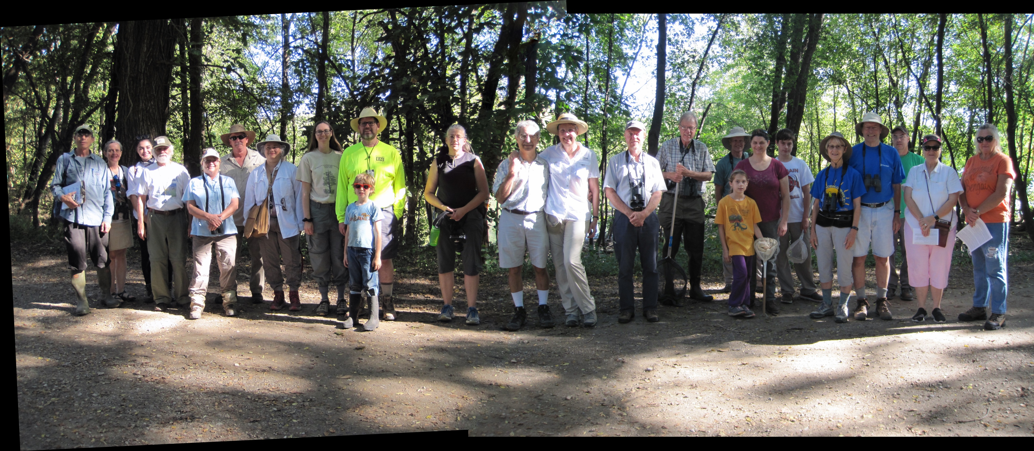 On Saturday July 12, 2014 the Society enjoyed an excellent hike led by Dr. Don Geiger to Siebenthaler Fen and Koogler Wetland. We saw a great variety of wetland plants including germander and the bright pink queen-of-the-prairie. About 24 in attendance and 78 degrees at 10 am. Group photo(Vic Soukup in blue shirt on left and leader Don Geiger in white tee shirt in the middle.